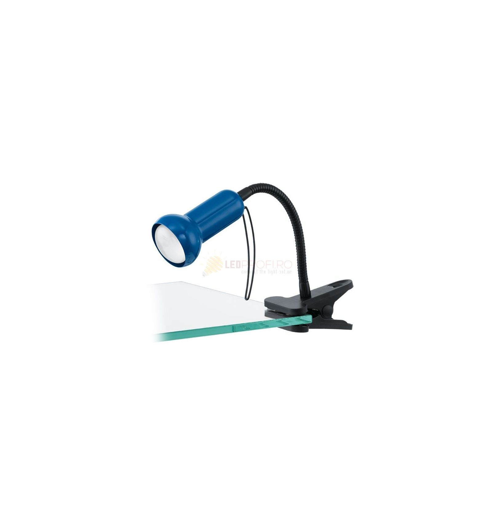 VEIOZA ALBASTRA E14 1X40W din colectia FABIO dispune de un ingenios sistem de prindere cu clema ce ii asigura mobilitate, acest corp de iluminat putand fi instalat cu usurinta pe marginea unor polite, dulapuri, mese sau birouri!
