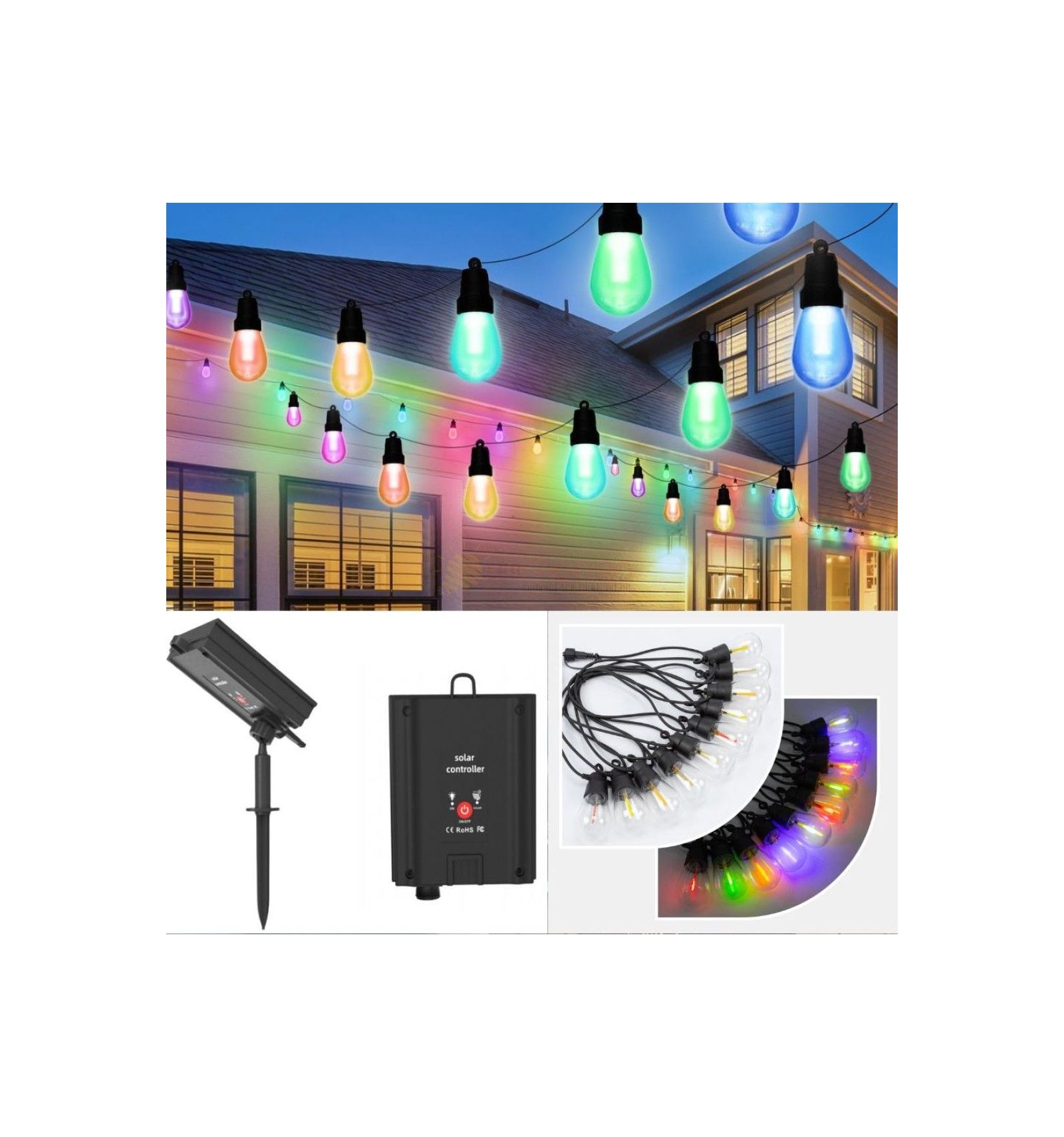 Adaugă culoare și viață spațiului tău exterior cu această ghirlandă solară RGB. Cu o lungime de 6.5 metri și 10 becuri LED RGB multicolore, această soluție de iluminare creează un ambient vesel și dinamic, ideal pentru evenimente speciale sau decor permanent.